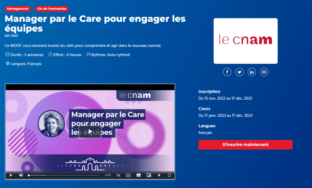 MOOC – CARE management pour soi et ses équipes [CNAM]